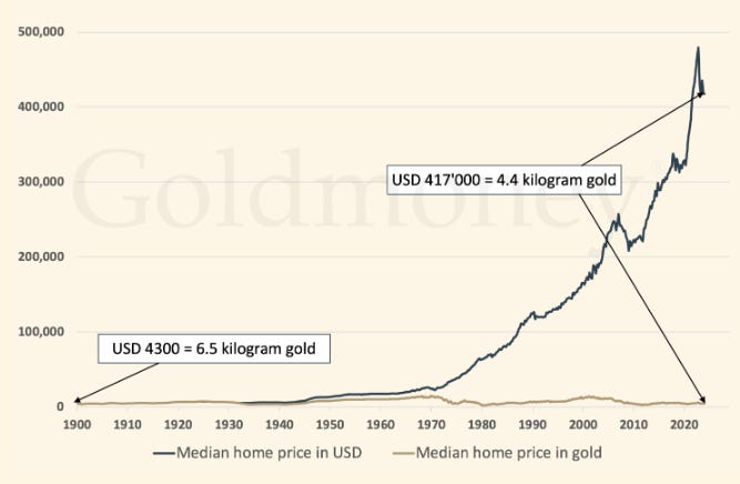 If a house costs 10 pounds of gold and doesnât change regardless of the USD price, then obviously you win.