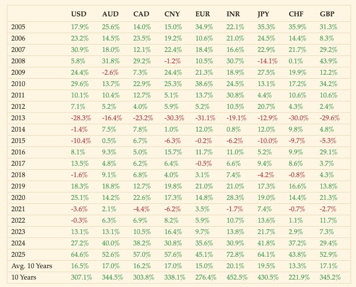 If youâd held all your money in gold instead of $USD for the past ten years, today youâd have more than three times as much spending power: