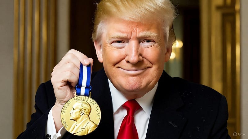 It really makes you wonder — what does an orange-skinned con artist with perfect natural hair and a pedophile bestie need to do to win a Nobel these days?