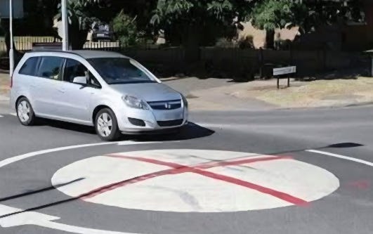 Even the little white roundabout in our tiny town got painted with a red cross like this one: